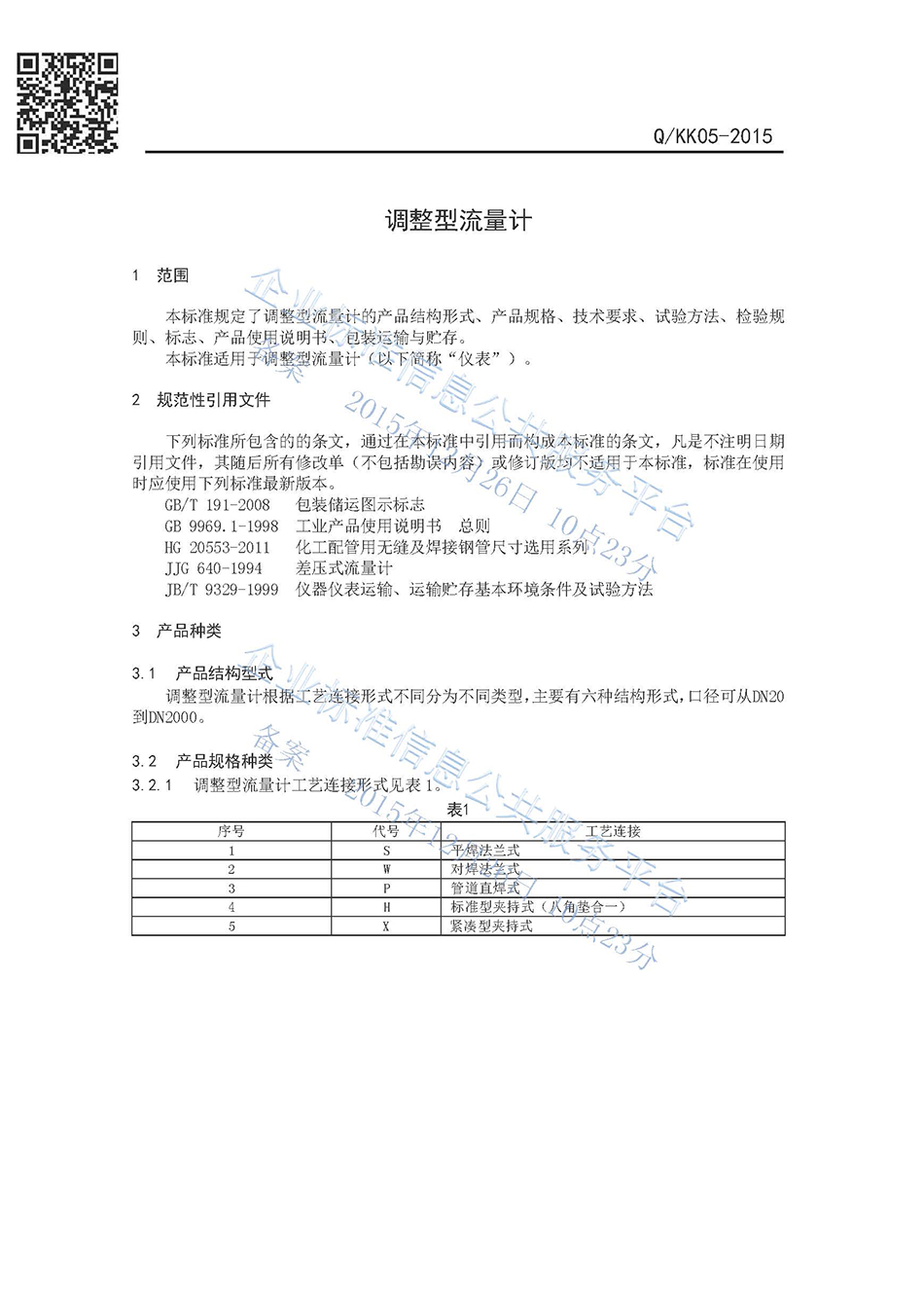 調(diào)整型流量計企業(yè)標準